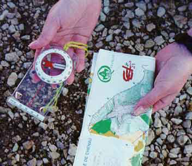 - A chaque changement de direction, faire en sorte que la carte reste orientée, comme c’est le cas avec un récepteur GPS. Peu importe que le texte soit à l’envers sur la carte, le principal est que celle-ci soit correctement orientée.